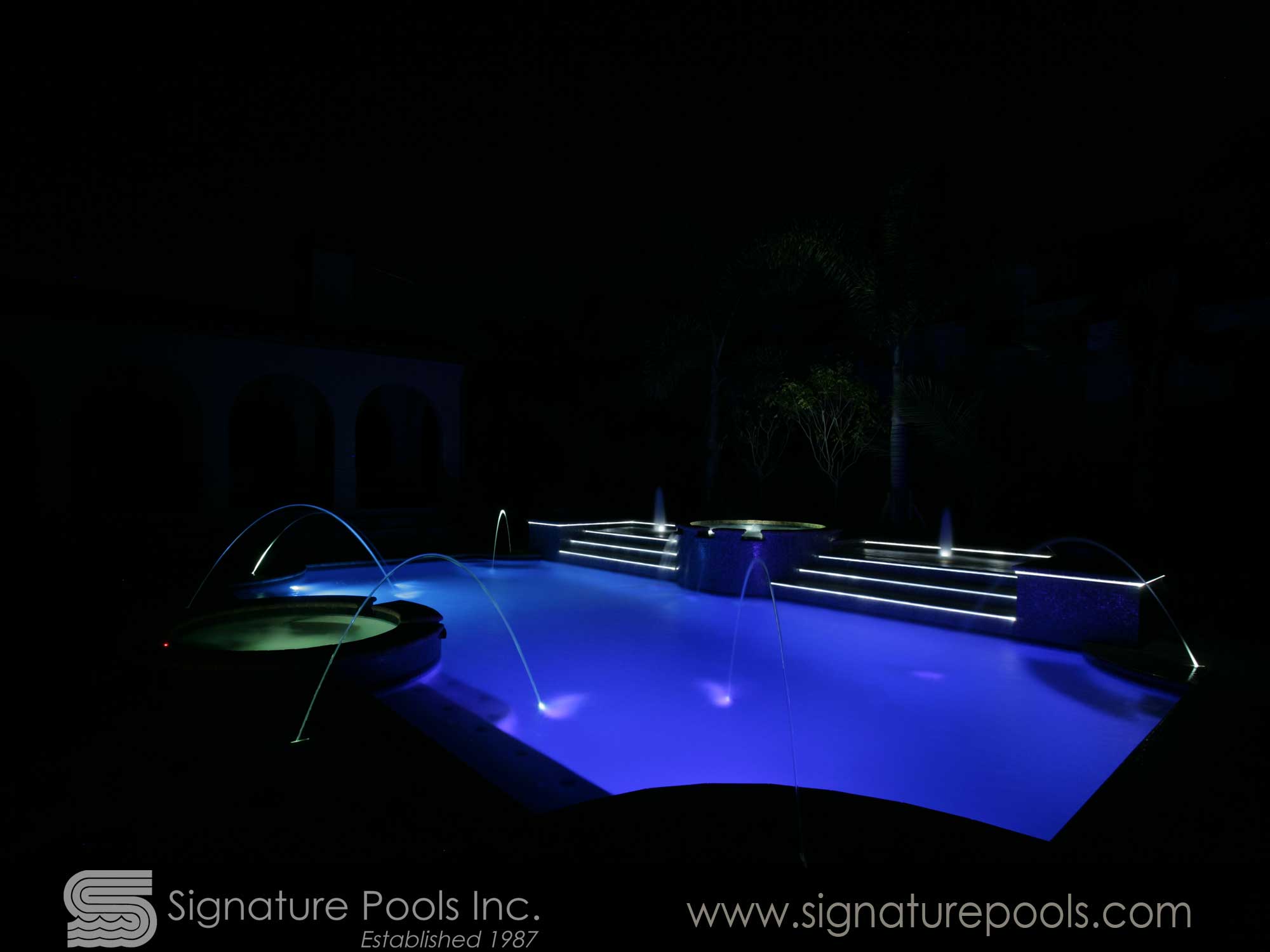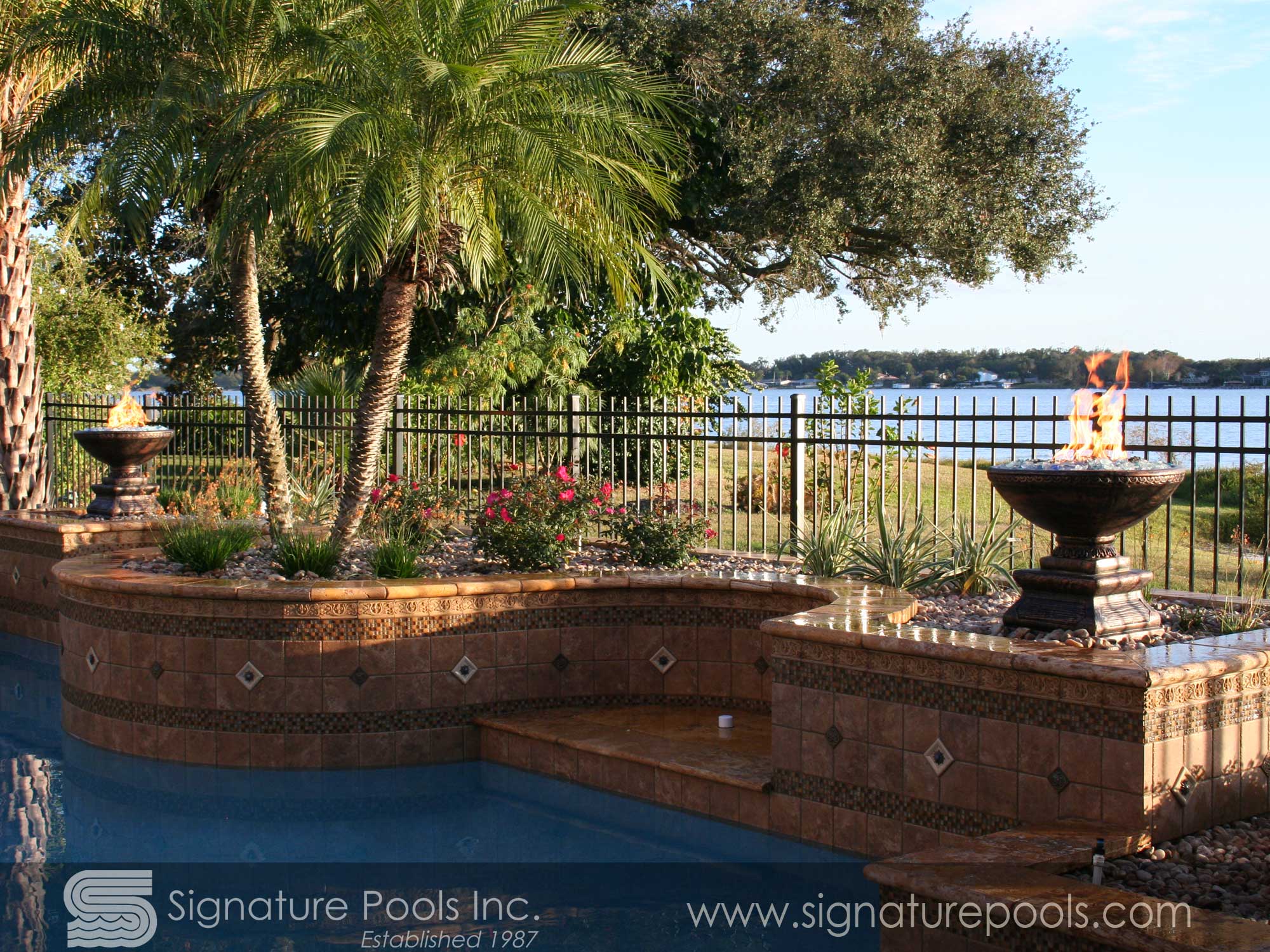 Arc and Tangent Linear Pool Design with Fire Waterfalls