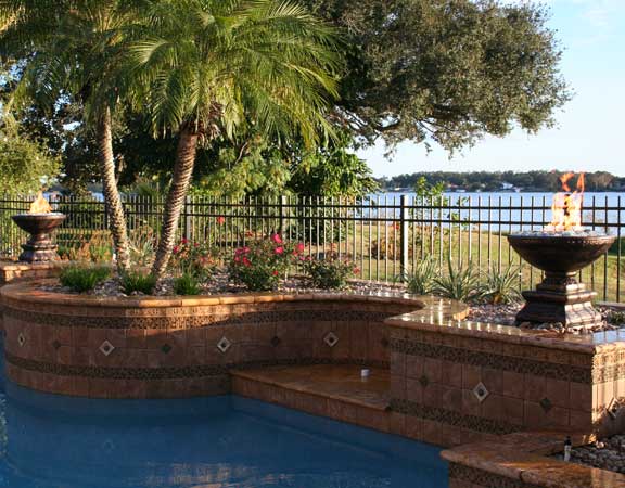 Arc and Tangent Linear Pool Design with Raised Planter Fire