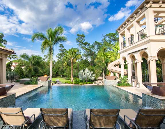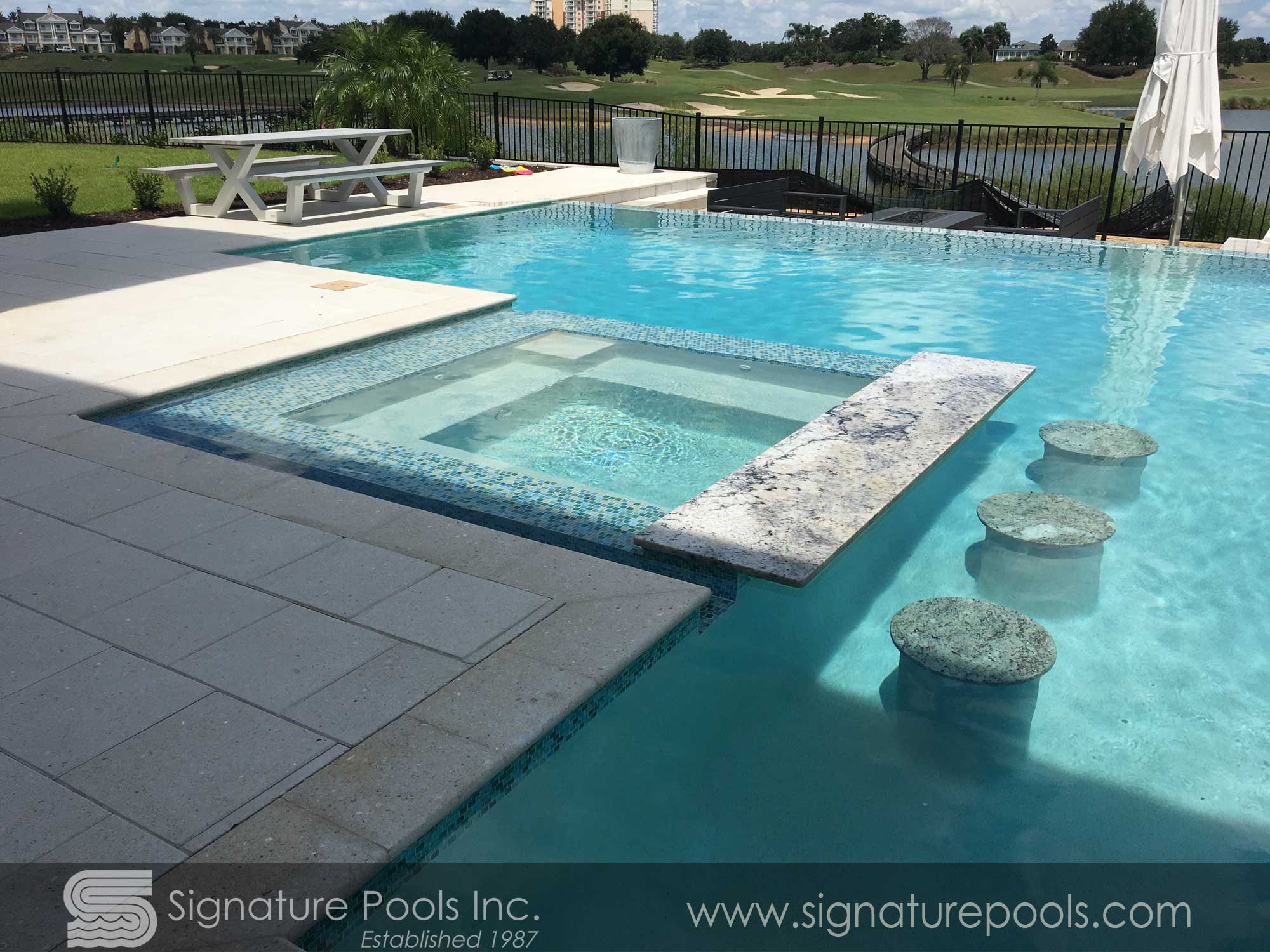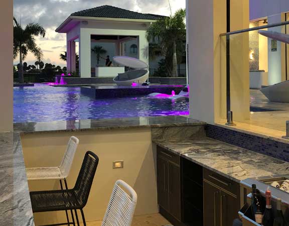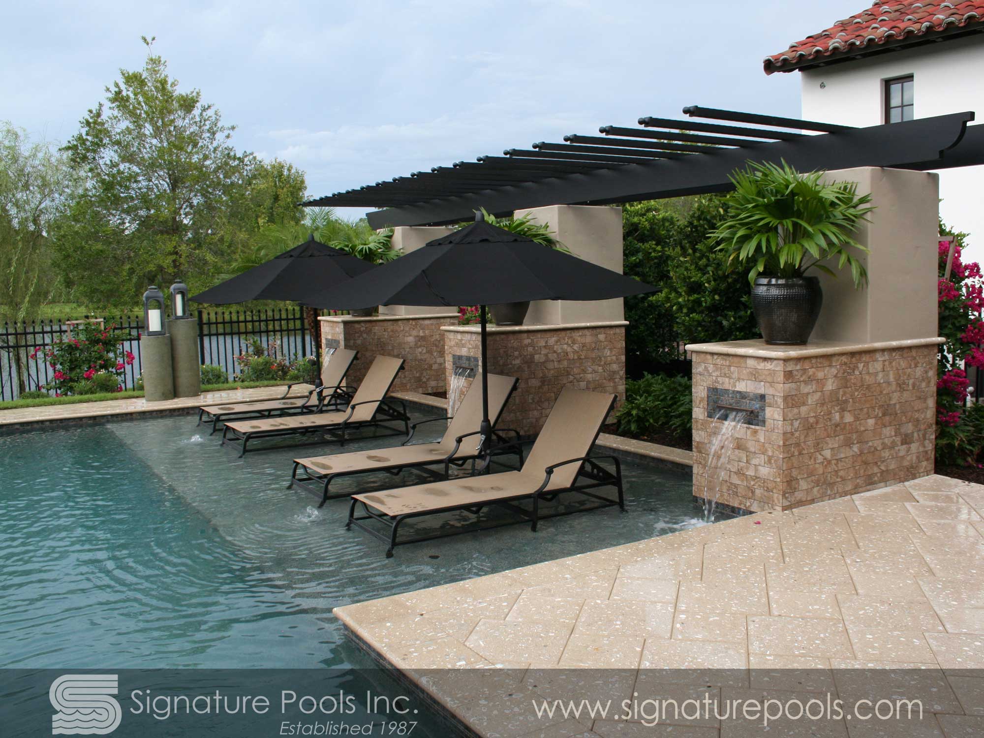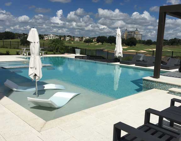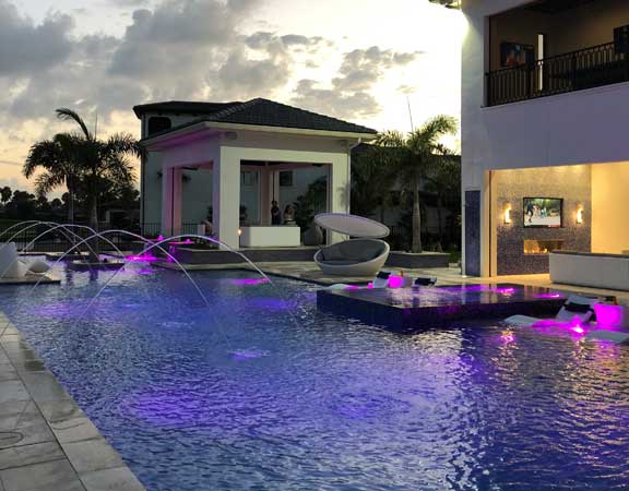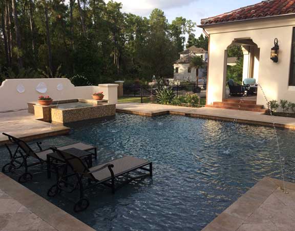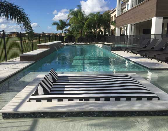 Linear Pool Design with Swimup Bar Water Features