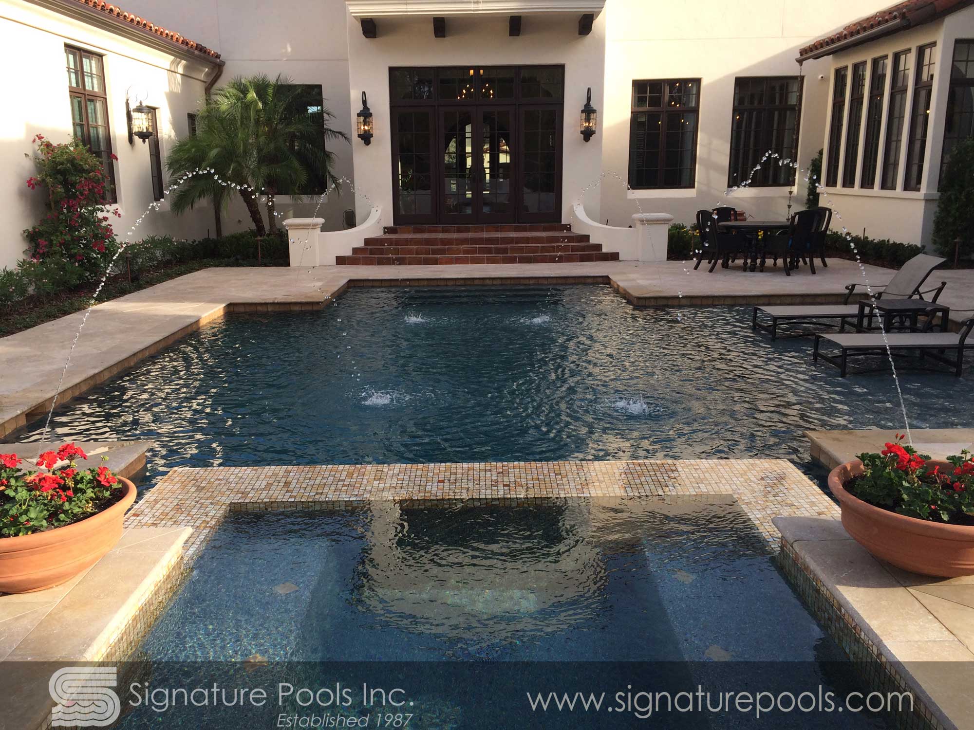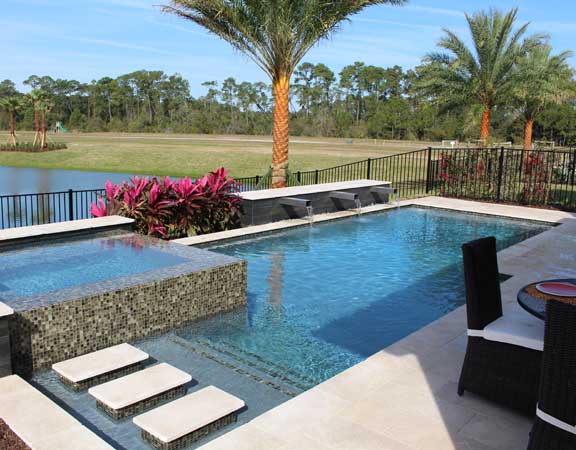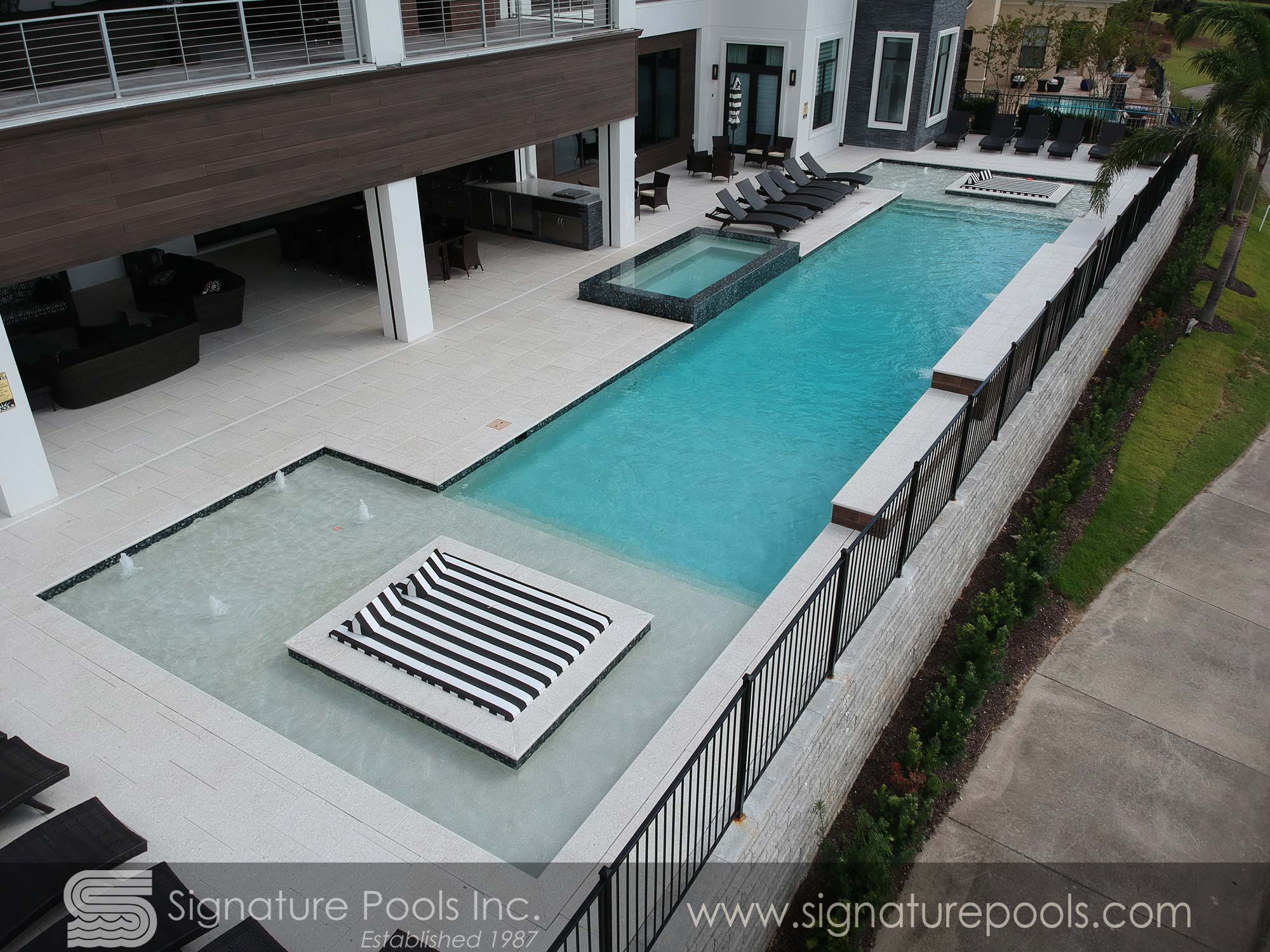 Linear Pool Design with Swimup Spa Sunken Seating