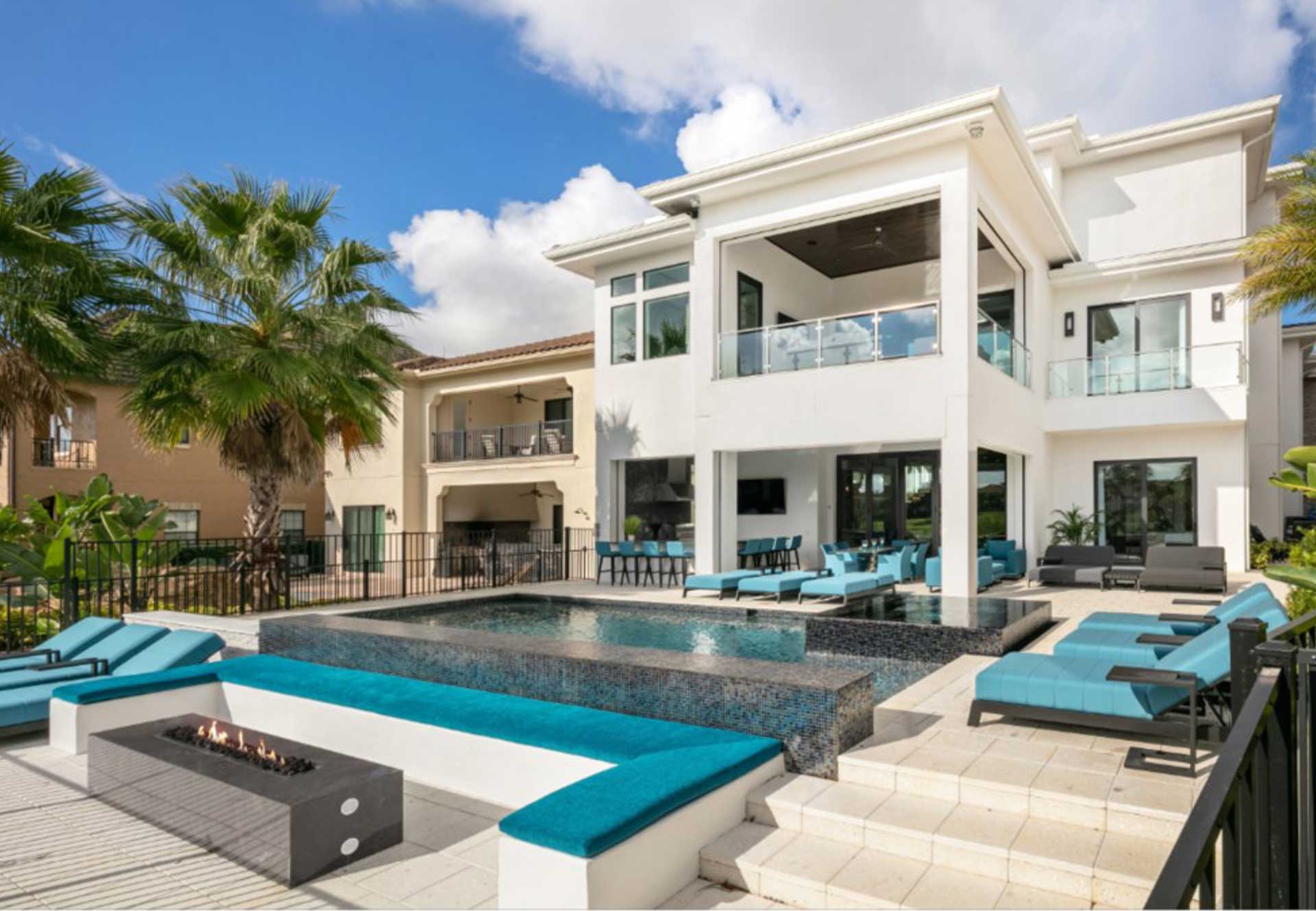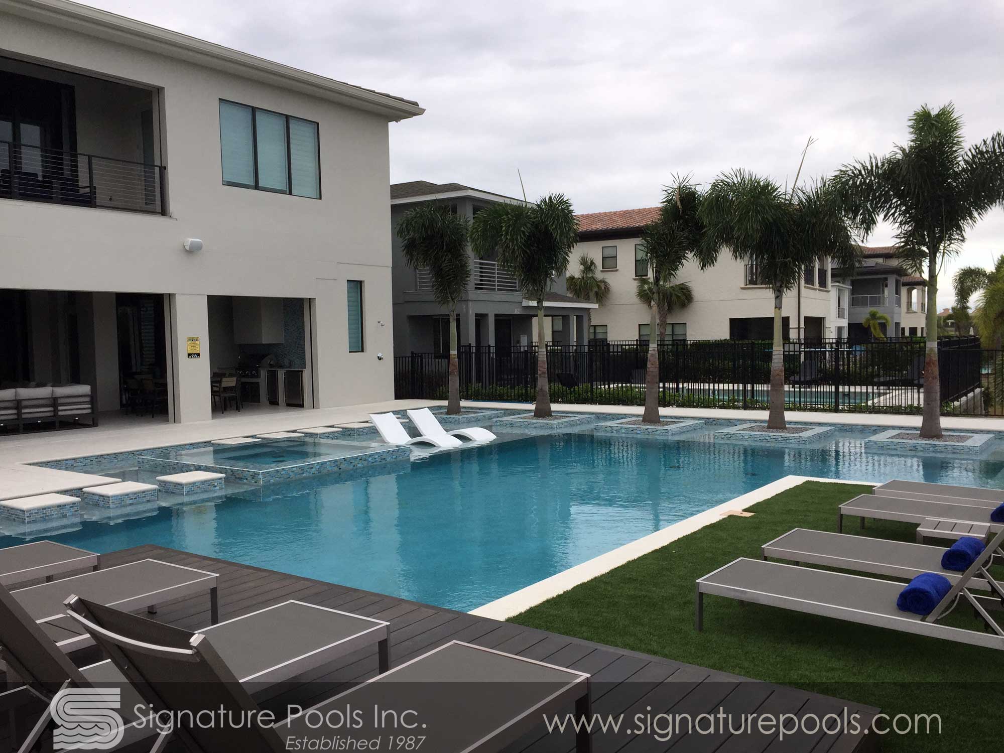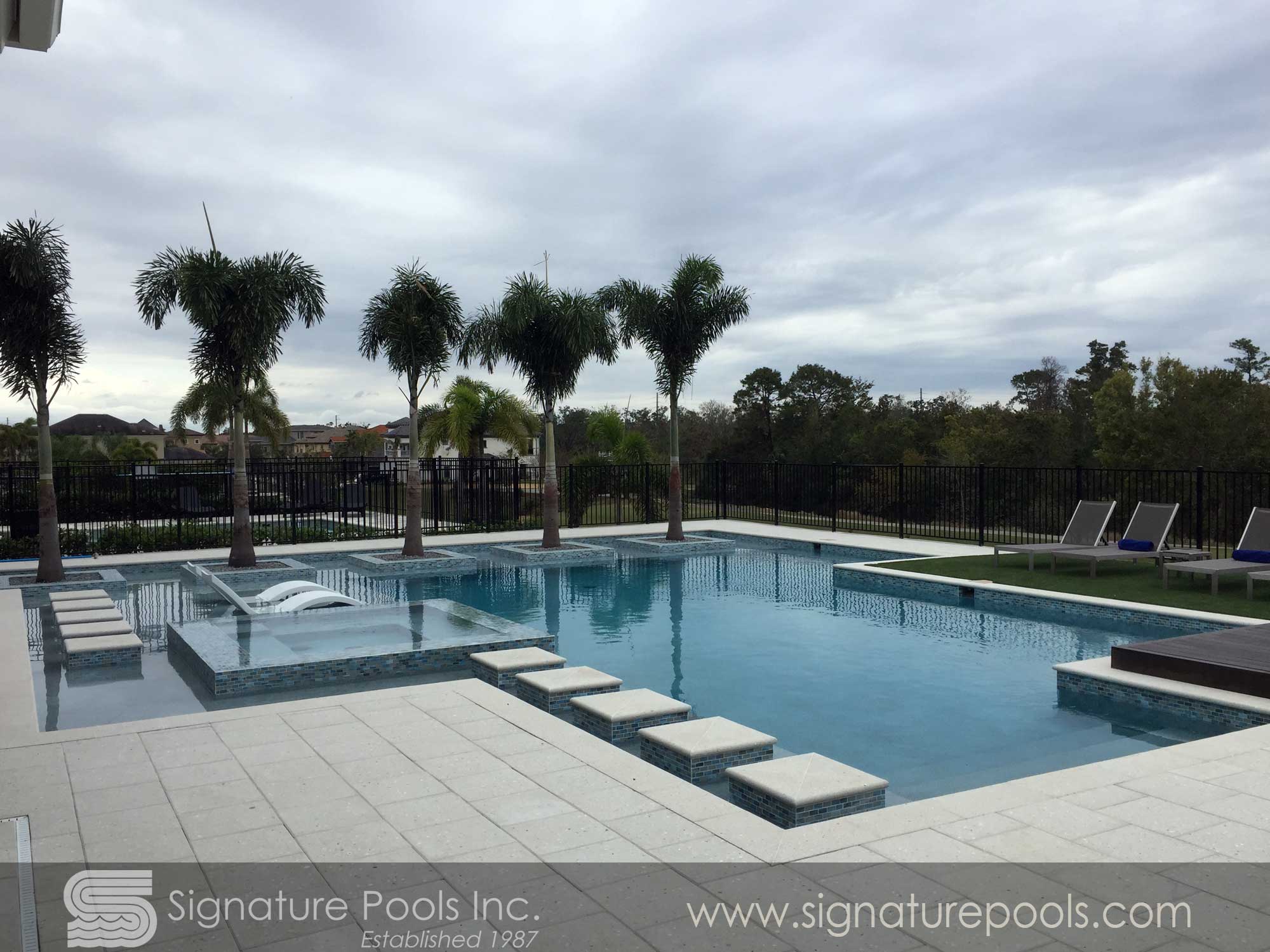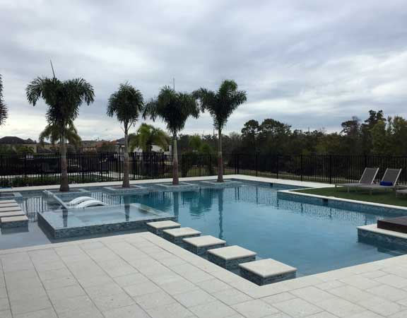 Linear Pool Design with Palm Planters Step Path