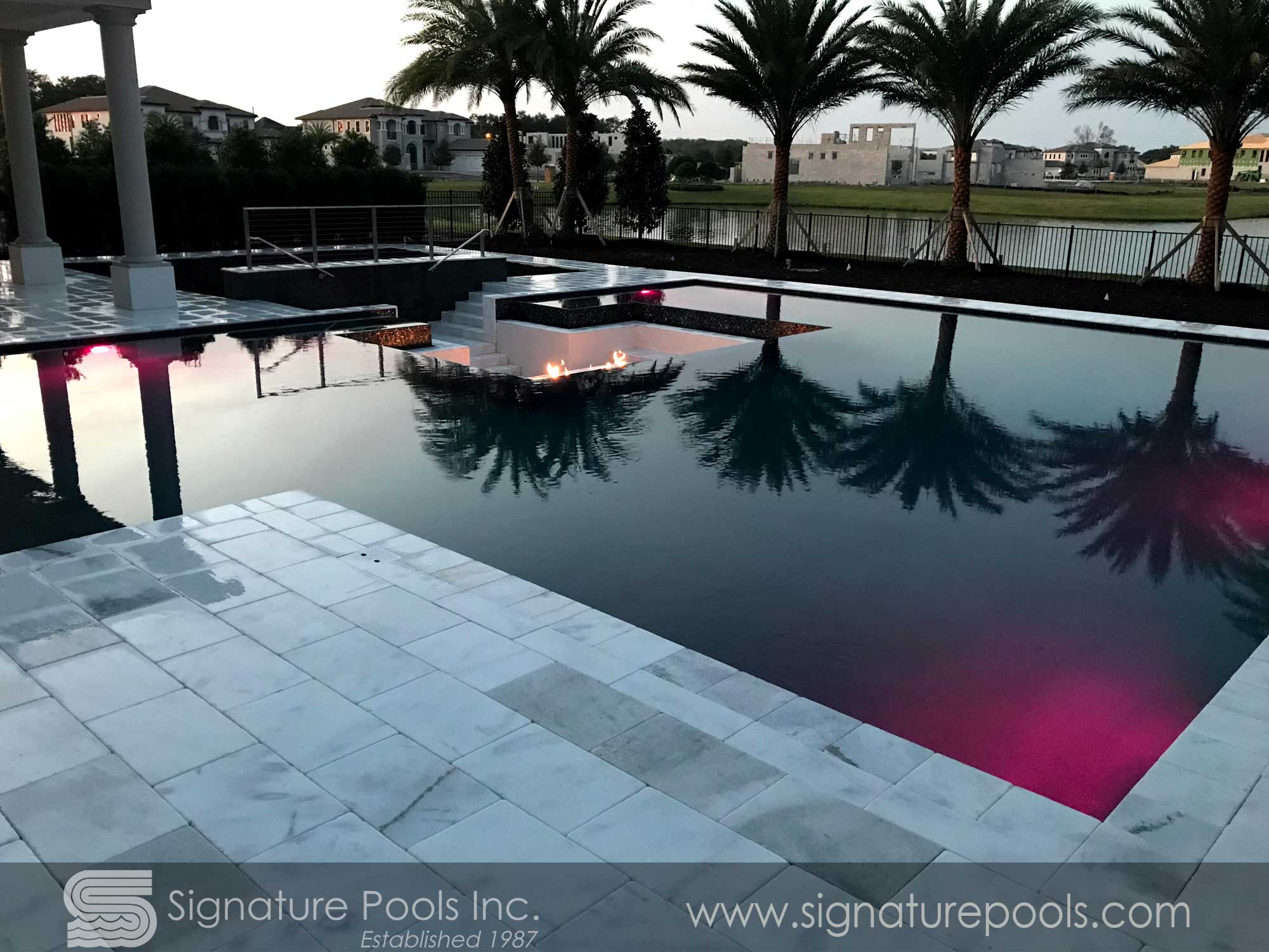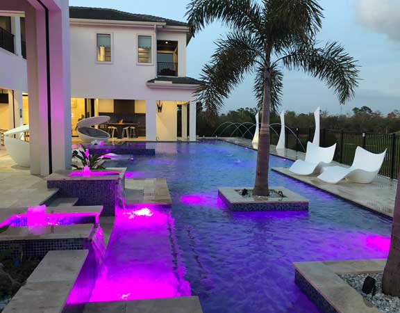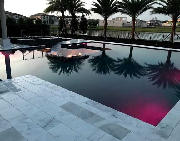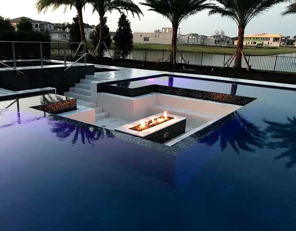 Linear Pool Design with Fire Spa