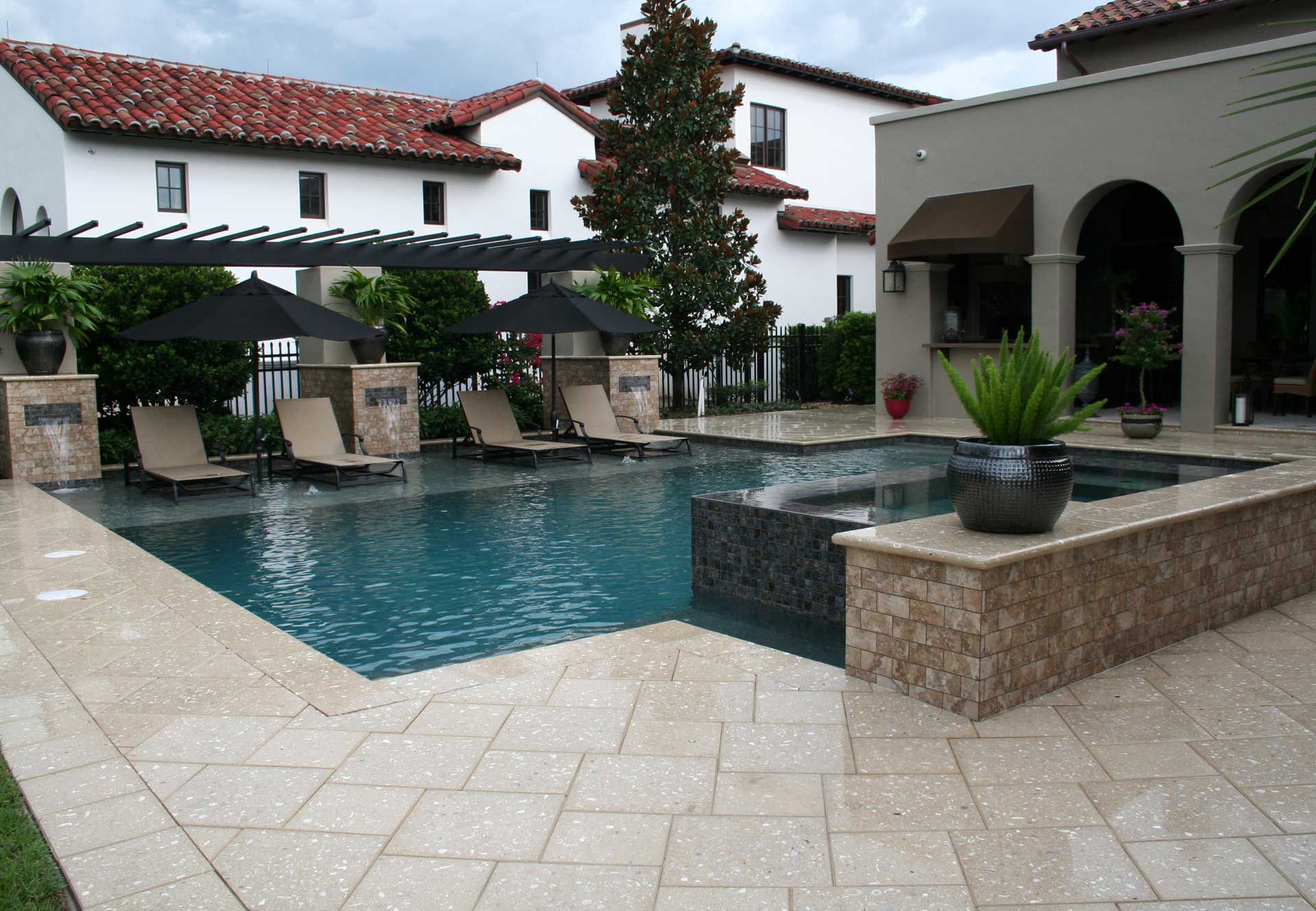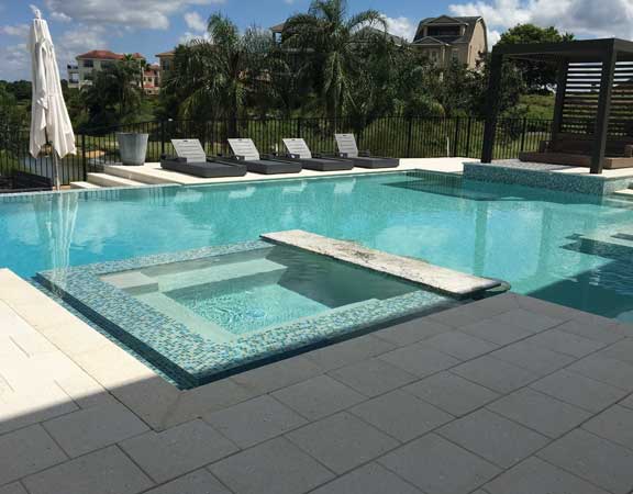 Linear Pool Design with Total Tile with Overflow Spa